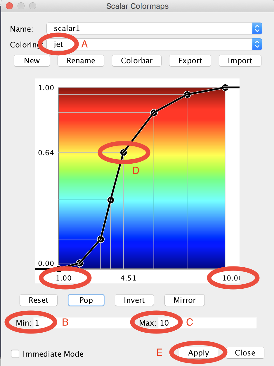 jet using the Coloring combobox (A). There are dozens of other scalar