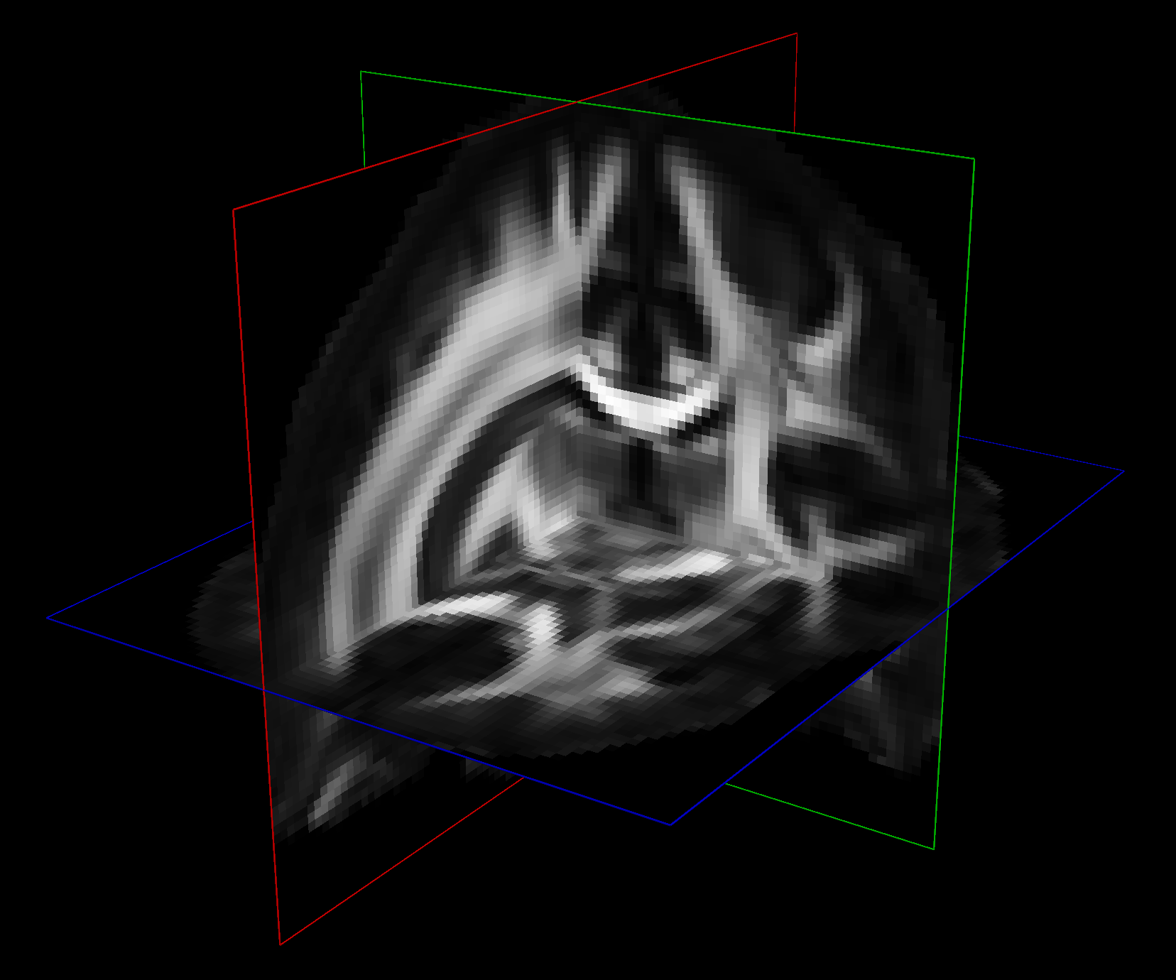 Volume is a dataset representing imaging data, whether that data is planar (2D) or volumetric (3D). If you have worked with images before, this will be familiar; however, there are several important differences. Most images encountered day-to-day are essentially a grid of pixels that each have a color, typically encoded by red, green, and blue intensities. By contrast, a Volume represents a 3D dimensional grid of voxels (volume elements) that each have an associated Vect. Sometimes this type of vector-valued volume is called a 4D image, where the fourth dimension identifies an entry of the vector at each voxel. Another way that a Volume is different from a typical image is that it has a spatial coordinate system. Most images have no need to store a pixel’s size or the position of an image in space, but these can be important in scientific imaging. Therefore, we include a coordinate system that to describe the spatial layout of the 3D grid represented by each Volume, which includes: